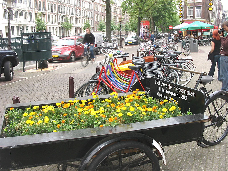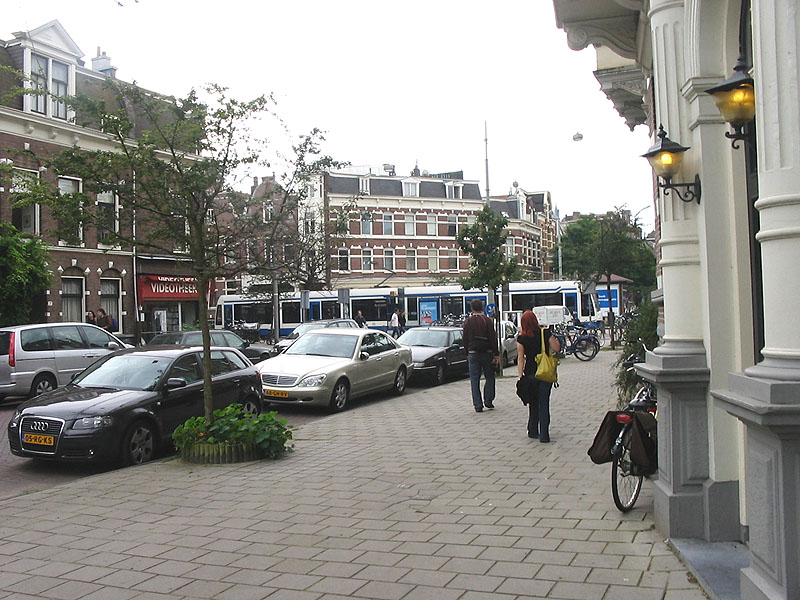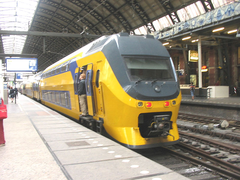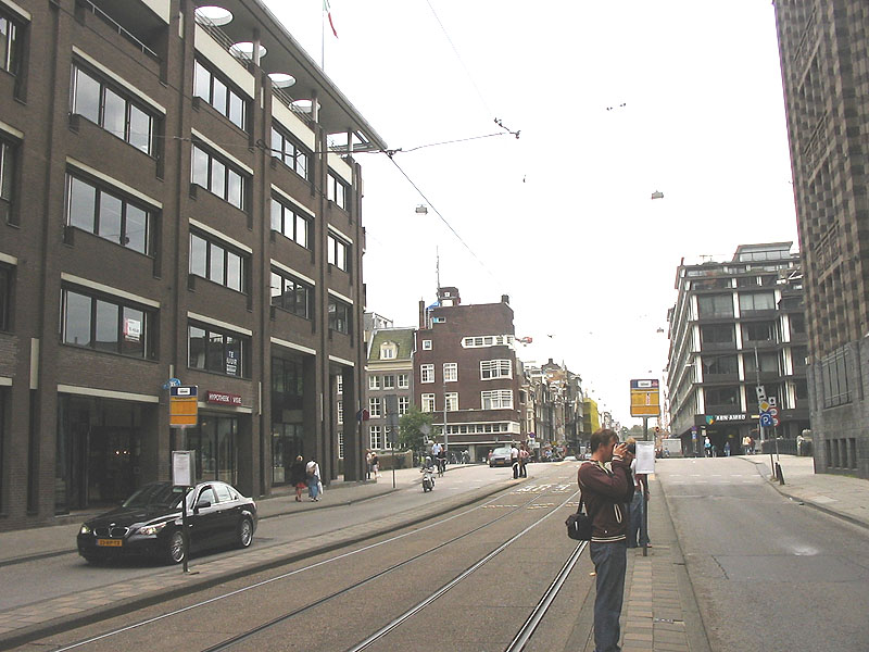 А это хитро разрисованный трамвай, отправляющийся от центрального вокзала Амстердама.