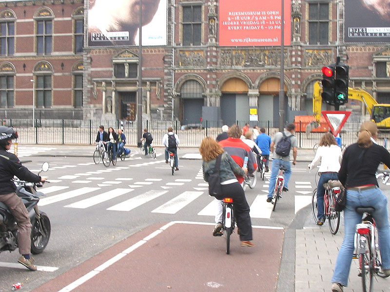 На светофоре для велосипедистов загорелся зелёный и они как муравьи разбежались :)