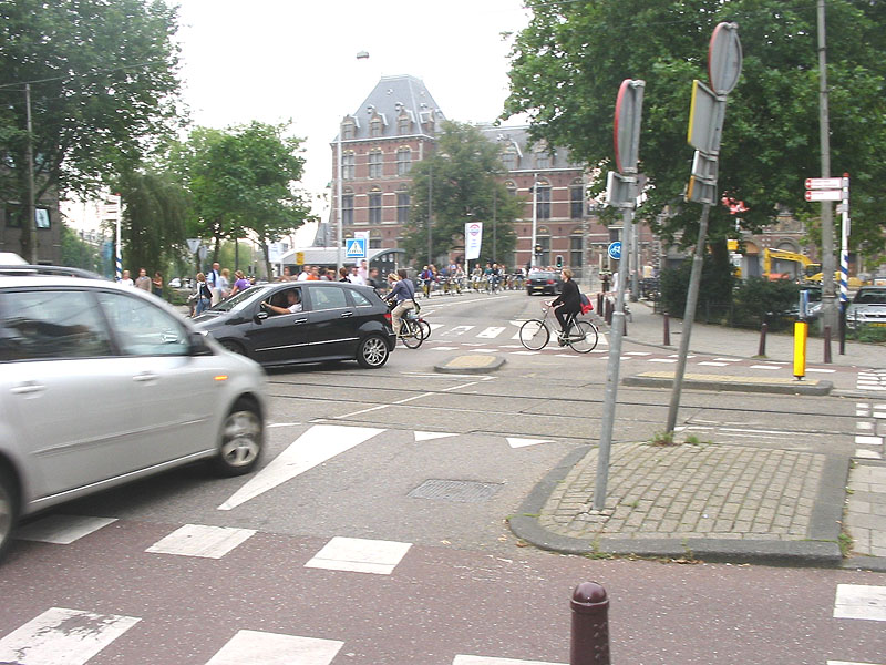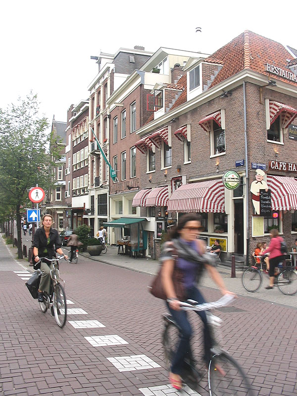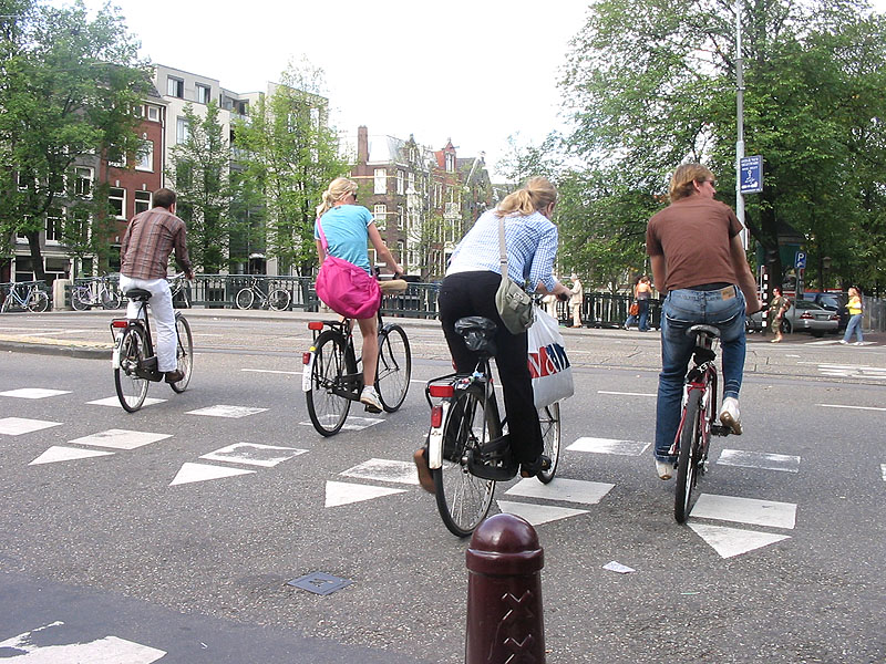 тут тоже велосипедисты ездят по своим дорожкам, а машины по своим ...