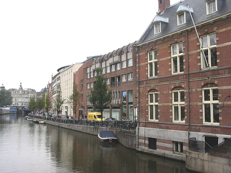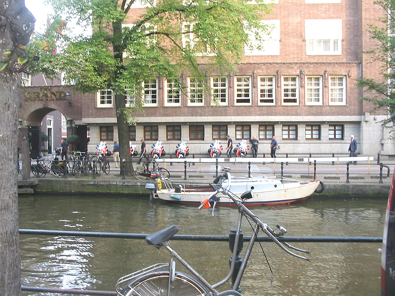 на противоположном берегу обычный полицейский участок ...а на переднем плане виден велосипед, с которого уворовали переднее колесо, потому что хозяин не прицепил его замком ...