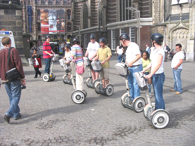 А это ребята учатся кататься на двухколёсных приспособлениях с электромоторчиком :)